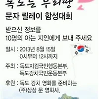 | 독도지킴국민행동본부, ‘독도는 우리땅 문자 릴레이 함성대회’ 개최 (0) | 2013.07.24 |