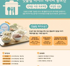레시피 썸네일형 리스트형 더벤티, 본사·가맹점 대상 벤티 플레이버 레시피 공모전 개최 더벤티, 본사·가맹점 대상 벤티 플레이버 레시피 공모전 개최 총 450만원 상당의 상금 수여·참여 가맹점 전원 더벤티 원두 증정 [시사타임즈 = 김혜경 기자] 대용량 커피 프랜차이즈 더벤티가 본사 직원 및 가맹점 구성원을 대상으로 ‘벤티 플레이버’를 표현하는 제 1회 ‘더벤티 레시피 공모전’을 실시한다. 9월15일까지 진행되는 이번 공모전은 ‘벤티 플레이버’를 주제로 더벤티 음료를 더욱 맛있게 즐길 수 있는 꿀조합 레시피나 기존에 없던 새로운 메뉴 레시피를 응모 받는다. ‘벤티 플레이버’는 오직 더벤티에서만 경험할 수 있는 맛으로 더벤티가 추구하는 새로운 브랜드 가치를 뜻한다. 더벤티는 고객들과 가장 밀접하게 소통하는 가맹점 구성원들의 의견을 적극 수용해 소비자와 가맹점, 본사가 상생하는 현장 경영을 실.. 더보기 ‘베이비밀 셀프쿠킹’ 이유식 레시피 공모전 진행 ‘베이비밀 셀프쿠킹’ 이유식 레시피 공모전 진행 3월31일까지 응모 가능…당선자 ‘셀프쿠킹 서포터즈’로 활동 [시사타임즈 = 이미선 기자] 풀무원건강생활(대표이사 여익현) 프리미엄 영·유아식 브랜드 풀무원 베이비밀이 DIY 이유식 키트 ‘셀프쿠킹’을 활용해 엄마의 정성을 담은 ‘이유식 레시피 공모전’을 진행한다고 밝혔다. 베이비밀 셀프쿠킹 체험단 또는 구매 고객 등 베이비밀 셀프쿠킹을 이용해 본 소비자는 누구나 참여할 수 있으며, 오는 3월 31일까지 베이비밀 사이트(www.babymeal.co.kr)와 개인 블로그, 카카오스토리, SNS 등에 ‘나만의 레시피’를 작성하면 된다. 1등 한명에게는 베이비밀 30만원 이용권이며, 선정된 총 10명은 ‘셀프쿠킹 서포터즈’로 활동하게 된다. 셀프쿠킹 서포터즈에게.. 더보기 풀무원 ‘잇슬림 라이스’ 나만의 레시피 공모전 진행 풀무원 ‘잇슬림 라이스’ 나만의 레시피 공모전 진행 [시사타임즈 = 한민우 기자] 풀무원건강생활의 바른 다이어트 프로그램인 ‘잇슬림(www.eatsslim.com)’이 다이어트에 도움을 주는 국내 최초 냉장즉석밥 ‘잇슬림 라이스 4종’(흑미곤약무밥, 아마씨드오곡밥, 검은약콩율무단호박밥, 녹차잎귀리밥) 출시를 앞두고 ‘레시피 공모전’을 진행한다. 잇슬림은 7월27일까지 잇슬림 브랜드몰(www.eatsslim.com), 잇슬림 페이스북(https://www.facebook.com/eatsslim), 네이버 카페 ‘은샘이네 초보요리’ 등을 통해 레시피 공모전 참가자 150명을 모집한다. 참여를 원하는 소비자들은 참여 신청 덧글을 남기면 된다. 당첨된 소비자는 오는 8월11일까지 ‘잇슬림 라이스 4종’ 체험 제.. 더보기 효종원, 제1회 오미자 아이디어 레시피 공모전 개최 효종원, 제1회 오미자 아이디어 레시피 공모전 개최 [시사타임즈 = 탁경선 기자] 프리미엄 오미자 기업 효종원(대표이사 이원규)은 요리 전문 매거진 수퍼레시피와 공동으로 제1회 오미자 아이디어 레시피 공모전을 개최했다. 오미자의 우수성을 소비자들이 직접 경험케 하고 식자재로서의 다양한 활용법을 개발하기 위한 목적의 대회다. 요리 분야 대표 온라인 동호회(은샘이네 초보요리, 수퍼레시피)를 대상으로 레시피를 접수한 결과 총 207건의 오미자 요리들이 모였다. 207건의 레시피 중 1차로 10개의 레시피가 선정됐는데, 이 중 1위로 오미자 양갱 & 푸딩이 선정됐다. 사진은 왼쪽부터 오미자 백설기, 오미자 샹그리아, 오미자 양갱 & 푸딩 ⒞시사타임즈 오미자청을 이용한 음료에서부터 김치 류, 양념 소스, 디저트,.. 더보기 이전 1 다음