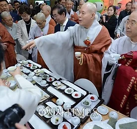 서울국제불교박람회, 개막 첫날 관람객 1만5천 여명 모여300여 업체 430부스 참가…역대 최대 규모 [시사타임즈 = 우경현 기자] 2016서울국제불교박람회(이하 불교박람회)가 4일 간의 축제를 시작했다. 불교박람회는 3월24일 오전 10시 30분 서울무역전시컨벤션센터(3호선 학여울역)에서 개막식을 봉행했다. ▲2016서울국제불교박람회에 사찰음식을 시음하고 있 박원순 서울시장과 스님들 (사진제공 = 서울국제불교박람회 사무국) ⒞시사타임즈 이날 개막식에는 조계종 총무원장 자승 스님, 천태종 총무원장 춘광 스님, 동국대학교 이사장 성타 스님, 전국비구니회 회장 육문 스님을 비롯해 문화체육관광부 김종 제2차관, 박원순 서울시장, 스리랑카 마니샤 구나세케라 대사, 네팔 키란샤캬 대사, 새누리당 황인자 의원, 국..