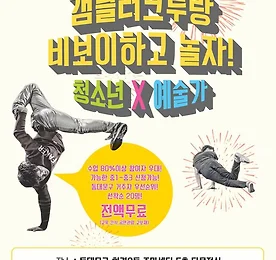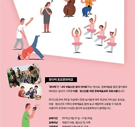 토요문화학교 썸네일형 리스트형 꿈다락 토요문화학교 ‘갬블러크루랑 비보이하고 놀자’ 11월17일까지 진행 꿈다락 토요문화학교 ‘갬블러크루랑 비보이하고 놀자’ 11월17일까지 진행 [시사타임즈 = 양동현 기자] 문화체육관광부가 주최하며 한국문화예술교육진흥원이 주관하는 2018 꿈다락 토요문화학교 ‘갬블러크루랑 비보이하고 놀자’가 청소년과 예술가들의 만남과 놀이의 년중 프로그램으로 오는 4월28일부터 11월17일 매주 총 25회차로 동대문구 휘경2동 주민센터 다목적강당에서 열린다. ▲청소년 예술가 비보이 포스터 (사진제공 = 예술배달부) (c)시사타임즈 꿈다락 토요문화학교는 교육과 간식, 공연관람, 교보재 일체가 지원되는 무료교육이다. ‘갬블러크루랑 비보이하고 놀자’는 비보잉의 이해와 기본동작의 의미를 알고 스텐딩 동작과 풋워크 등 동작을 체험한다. 두명 이상의 친구들과 다양한 연속동작을 만들고 비보이 넌버벌 .. 더보기 서울시, ‘2016년 꿈다락 토요문화학교’ 참여자 모집 서울시, ‘2016년 꿈다락 토요문화학교’ 참여자 모집 [시사타임즈 = 김혜경 기자] 서울시는 서울문화재단과 함께 또래간·가족간에 소통을 활성화하고 많은 학생과 가족들에게 다양한 문화예술 향유기회를 제공하고자 오는 3월19일부터 ‘2016년 꿈다락 토요문화학교’를 운영한다. 서울지역 는 서울시, 서울문화재단이 주관하며, 문화체육관광부와 한국문화예술교육진흥원이 협력하는 문화예술 교육프로그램이다. 2012년부터 주5일 수업제의 전면실시에 따라 학교에 가지 않는 토요일에 학생과 가족들에게 다양한 문화예술체험을 즐길 수 있는 기회를 제공한다. ‘꿈다락’은 ‘나의 비밀스런 꿈의 아지트’라는 뜻으로 학령기 아동, 청소년, 가족이 함께 건강한 여가문화를 조성하고 문화예술소양을 함양할 수 있도록 서울지역 곳곳에서 다채.. 더보기 서울시, ‘2015년 꿈다락 토요문화학교’ 참여자 모집 서울시, ‘2015년 꿈다락 토요문화학교’ 참여자 모집 [시사타임즈 = 이미경 기자] 서울시는 서울문화재단과 함께 또래간·가족간에 소통을 활성화하고 많은 학생과 가족들에게 다양한 문화예술 향유기회를 제공하고자 오는 3월21일부터 ‘2015년 꿈다락 토요문화학교’를 운영한다. 서울지역 는 서울시가 주최하고 서울문화재단이 주관하며 문화체육관광부와 한국문화예술교육진흥원이 협력하는 문화예술 교육프로그램이다. 2012년부터 주5일 수업제의 전면실시에 따라 학교에 가지 않는 토요일에 학생과 가족들에게 다양한 문화예술체험을 즐길 수 있는 기회를 제공한다. ‘꿈다락’은 ‘나의 비밀스런 꿈의 아지트’라는 뜻으로 학령기 아동, 청소년, 가족이 함께 건강한 여가문화를 조성하고 문화예술소양을 함양할 수 있도록 서울지역 곳곳에.. 더보기 ‘꿈다락 토요문화학교 예술감상교육 운영사업’ 공모 ‘꿈다락 토요문화학교 예술감상교육 운영사업’ 공모 [시사타임즈 = 한민우 기자] 문화체육관광부(장관 유진룡)는 한국문화예술회관연합회(회장 고학찬)와 함께 ‘꿈다락 토요문화학교 예술감상교육 운영사업’을 진행한다고 21일 밝혔다. ‘꿈다락 토요문화학교 예술감상교육 운영사업(부제:청소년 문화예술 감상학교)’은 청소년의 자발적 문화예술 향유능력 제고 및 정서함양을 위해 2014년 3월부터 12월까지 문예회관을 기반으로 하는 문화예술 감상교육 프로그램이다. 이에 한국문화예술회관연합회는 우수한 프로그램 선정을 위해 오는 1월29일까지 전국 문예회관을 대상으로 프로그램을 공모한다. 이론 강의나 예술 기능교육 중심이 아닌 ▲음악 ▲미술 ▲공연 등 분야별 또는 세부 장르별 예술작품 감상교육이 중심이 된 프로그램이면 신청.. 더보기 이전 1 다음