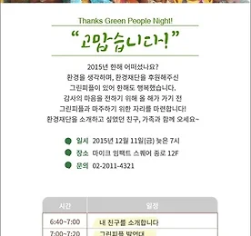 환경재단 썸네일형 리스트형 환경재단, 롯데백화점 영등포점에 ‘에코맘스라운지’ 1호점 오픈 환경재단, 롯데백화점 영등포점에 ‘에코맘스라운지’ 1호점 오픈 29일 오전 10시 3층에서 개소식…보자기 띠풀기 및 임신부 체험행사 진행 [시사타임즈 = 한민우 기자] 환경재단은 오는 29일 오전 10시 롯데백화점 영등포점 3층에서 예비맘들을 위한 친환경 휴식공간인 ‘에코맘스라운지’ 제1호점 개소식을 연다. 개소식에는 환경재단 최열 대표를 비롯 롯데백화점 김대수 마케팅부문장, 김영주 국회의원, 임산부 고객 등 20여명이 참가해 이효재 디자이너가 특별 제작한 보자기 띠풀기 세레모니 및 임신부 체험행사를 진행한다. 백화점 개·폐점 시간과 동일하게 평일은 오전 10시 30분~오후 8시, 주말은 오전 10시 30분~오후 8시30분까지 운영한다. 친환경 프라이빗한 휴식공간을 자랑하는 에코맘스라운지는 올해 말까지 .. 더보기 환경재단 ‘세밝사’ 시상식…’100만촛불국민’ 등 19팀 수상 영예 환경재단 ‘세밝사’ 시상식…’100만촛불국민’ 등 19팀 수상 영예 7일 오후 6시 세종홀에서…수상자 가족 등 200여명 참석 [시사타임즈 = 한민우 기자] 환경재단(대표 최열)은 7일 오후 6시부터 세종홀에서 개최된 ‘2016 세상을 밝게 만든 사람들(세밝사)’ 수상자 19팀에 대한 시상식을 후원의 밤과 함께 개최했다. ▲2016 세밝사 100만촛불국민 즉석 수상자가 된 아이들. ⒞시사타임즈 ‘세밝사’ 수상자와 가족, 정치인, 기업인, 개인후원자 등 200여명이 참석한 가운데 열린 이날 시상식은 사회봉사(4팀), 환경개선(2팀), 고난극복(2팀), 재능문화(4팀), 사회혁신(7팀) 등 5개 분야로 나눠서 진행했다. 사회봉사 부문 수상자로 ‘리멤버0416’을 만들어 활동한 오지숙씨는 “거리 시위 중 할머.. 더보기 환경재단 ‘2016 세상을 밝게 만든 사람들’ 후보자 추천 공모 환경재단 ‘2016 세상을 밝게 만든 사람들’ 후보자 추천 공모 11월18일까지 홈페이지서 후보자 추천 접수 올해로 11회째 사회 그늘진 곳 밝혀…12월7일 시상식 개최 [시사타임즈 = 한민우 기자] 환경재단(대표 최열)은 ‘2016 세상을 밝게 만든 사람들(이하 세밝사)’을 11월3일부터 18일까지 일반 시민들을 대상으로 추천을 받는다. ▲2014년 세상을 밝게 만든 사람들 수상자 단체사진. ⒞시사타임즈 참여방법은 환경재단 홈페이지(www.greenfund.org)에 접속해 환경, 사회, 문화예술 등 각 분야에서 올 한해 동안 세상을 밝게 만든 사람들을 추천하고 간단하게 사유를 적으면 된다. 2005년 시작해 올해 11번째를 맞는 ‘세밝사’는 한 해 동안 우리 사회 곳곳에서 나눔과 헌신, 도전과 열정,.. 더보기 ‘환경해뿌까’ 환경재단과 뿌까 캐릭터 업무협약 3일 체결 ‘환경해뿌까’ 환경재단과 뿌까 캐릭터 업무협약 3일 체결 향후 캠페인 기획 및 진행 시 뿌까 캐릭터 활용 합의 [시사타임즈 = 탁경선 기자] 환경재단(대표 최열)과 캐릭터 디자인회사 ㈜부즈(대표 김부경)가 지난 5월3일 오전 10시 서울 강남구 역삼동 부즈 사옥에서 토종 캐릭터 ‘뿌까(PUCCA)’를 활용한 환경 공익사업 공동 기획 MOU를 체결했다. ▲환경재단과 ㈜부즈가 지난 5월3일 캐릭터 ‘뿌까(PUCCA)’를 활용한 환경 공익사업 공동 기획 MOU를 체결했다. (사진제공 = 환경재단) (c)시사타임즈 환경재단과 ㈜부즈는 대중적으로 큰 인기를 끌고 있는 토종 캐릭터 ‘뿌까’와 환경분야의 전문성을 바탕으로 다양한 대중 캠페인을 진행해 온 환경재단의 노하우를 최대한 활용해 환경문제에 대한 대중적 인식을.. 더보기 환경재단, ‘2016 세계청소년 지구환경포럼’ 개최 환경재단, ‘2016 세계청소년 지구환경포럼’ 개최 세계 12개국 400여명 청소년 참가…모의 UN 프로그램도 운영 [시사타임즈 = 탁경선 기자] 환경재단은 지난 1월26일부터 28일까지 3일간, ‘미래세대를 위한 지속가능한 에너지’를 주제로 ‘2016 세계청소년 지구환경포럼’을 개최했다고 밝혔다. ▲2016 세계청소년 지구환경포럼에서 방송인으로 활약하고 있는 줄리안 퀸타르트 씨가 강연을 하고 있다. (사진제공 = 환경재단) ⒞시사타임즈 삼성엔지니어링 꿈나무푸른교실과 환경재단 어린이환경센터가 주최하고 서울대학교 환경대학원이 주관하며 환경부가 후원하는 이번 행사는 서울대학교 및 삼성엔지니어링 본사에서 진행됐다. 2012년부터 시작돼 올해로 5회째를 맞는 세계청소년지구환경포럼은 “미래 세대를 위한 지속가능한.. 더보기 환경재단, ‘Thank U Night’ 파티 12월11일 개최 환경재단, ‘Thank U Night’ 파티 12월11일 개최 [시사타임즈 = 박시준 기자] 환경재단(이사장 이세중, www.greenfund.org)은 오는 11일 오후 7시 서울 마이크임팩트스퀘어에서 후원자들을 초청해 ‘Thank U Night’ 파티를 개최한다고 밝혔다. 이번 파티에는 올 한해 동안 아시아 태양광 전등지원 프로그램 및 에코빌리지 프로젝트를 후원하거나 해당 프로그램에 관심있는 누구나 참여가 가능하며 참가비는 무료이다. 환경재단은 2002년부터 국내 환경교육 프로그램 진행과 함께 기후재난으로 고통받고 있는 동남아시아를 돕기 위해 다양한 환경 후원프로그램을 개발, 진행해왔다. 기후재난의 피해를 줄이면